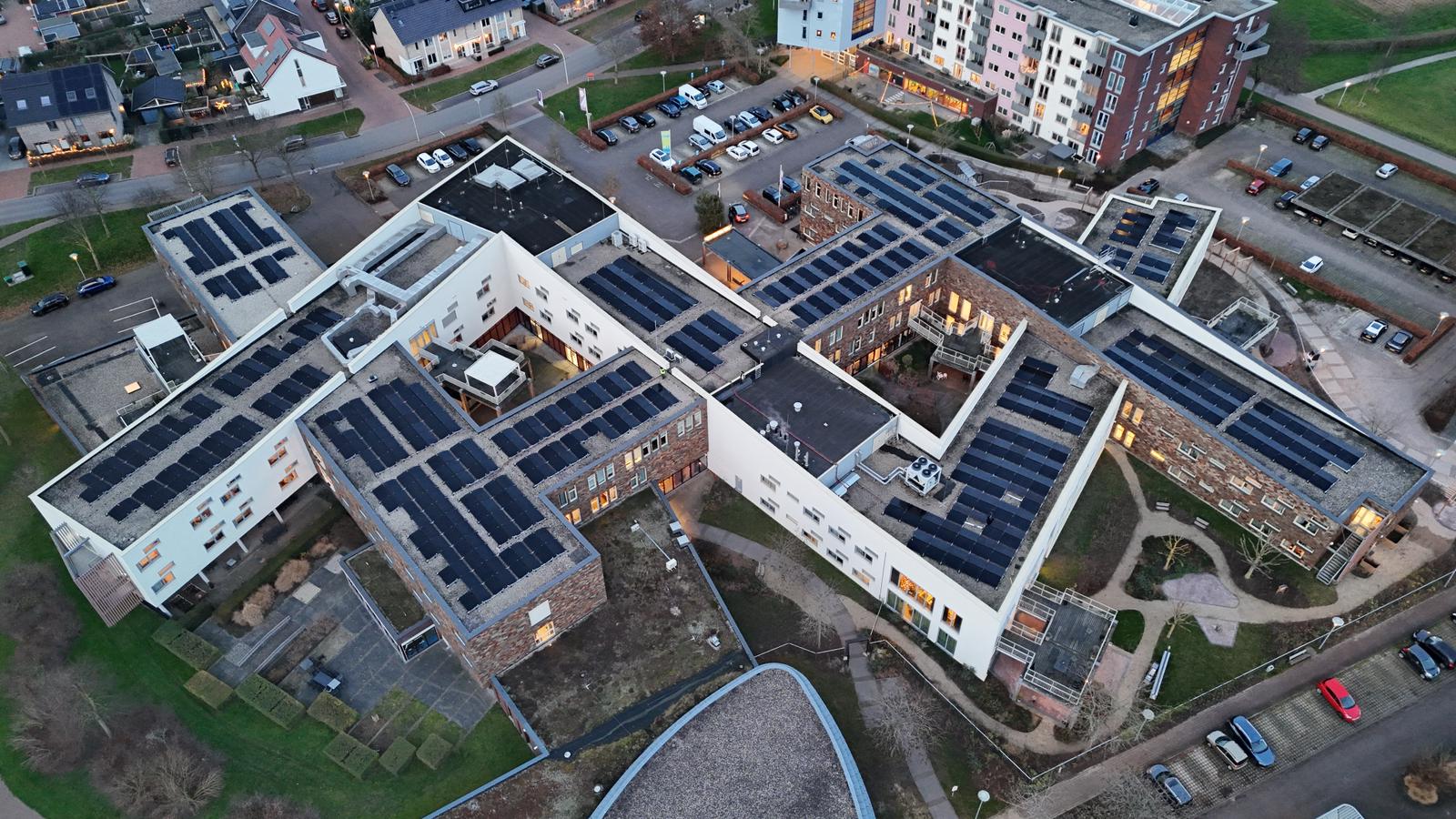 Het gebouw van Vereen staat in een stedelijke omgeving met veel omwonenden, waaronder appartementen direct naast het pand. Om overlast tijdens en na de bouw te beperken, was dit een belangrijk aandachtspunt in het project. In de uitvraag hebben wij daarom gevraagd expliciet rekening te houden met schittering van het zonnestroomsysteem. De uiteindelijke keuze viel op AIKO zonnepanelen met All Back Contact (ABC) technologie en een full-black design, die door het ontbreken van zichtbare contactpunten aan de voorzijde zorgen voor een beperkt reflecterend oppervlak.